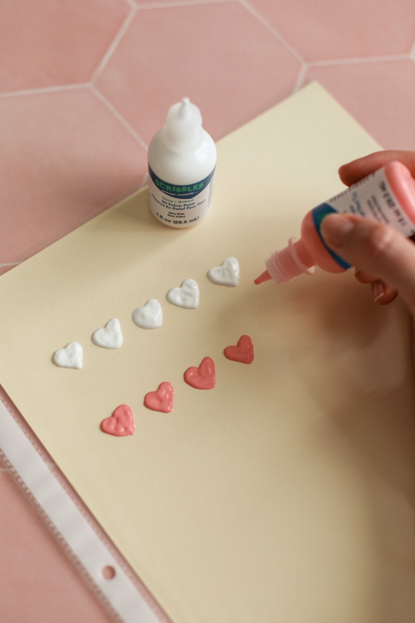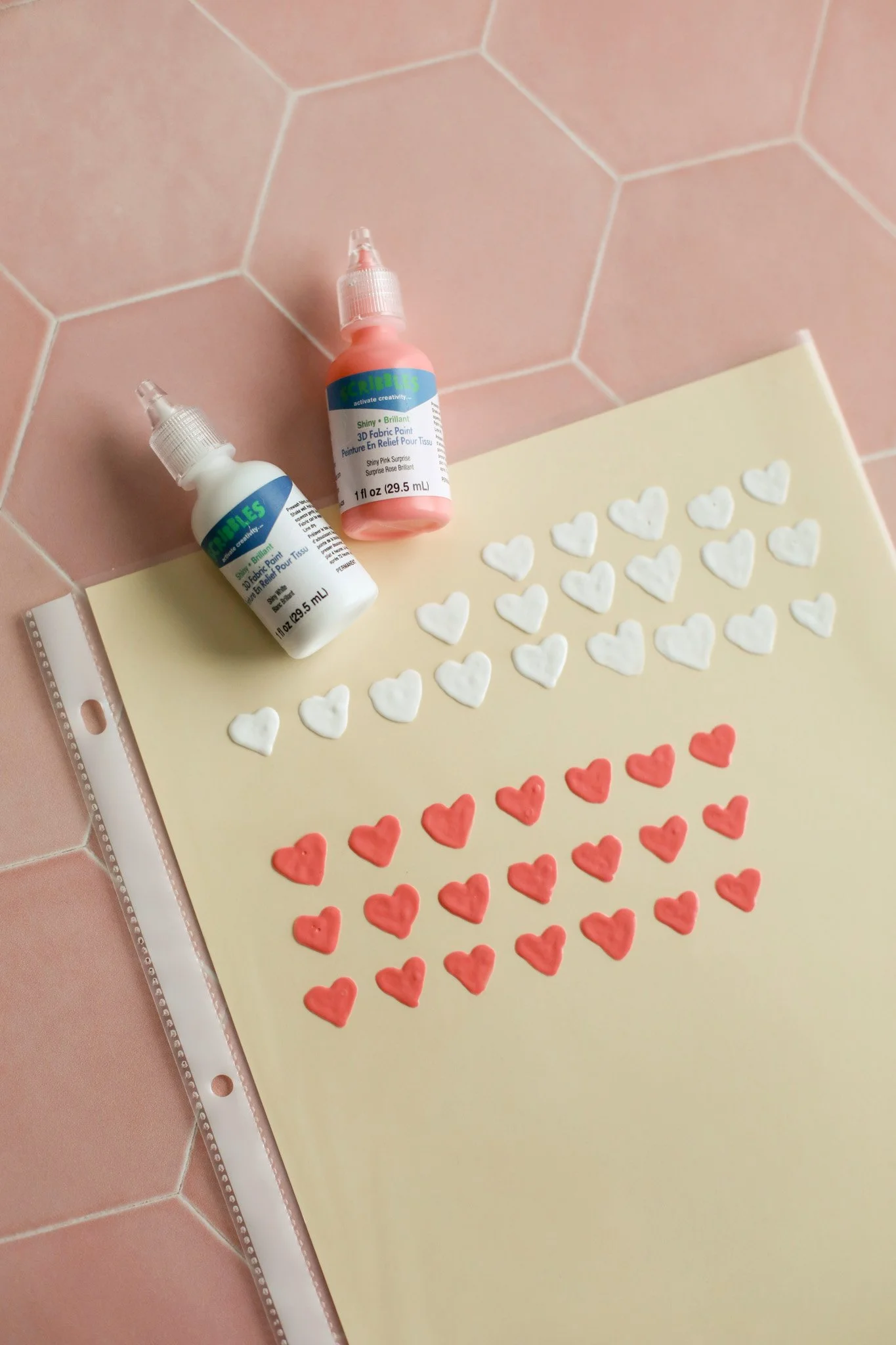 Allow your paint to dry overnight. You will notice it does seem to flatten a bit more than it looks when you first paint it on as it dries. You have now essentially made yourself a bunch of puffy heart stickers!