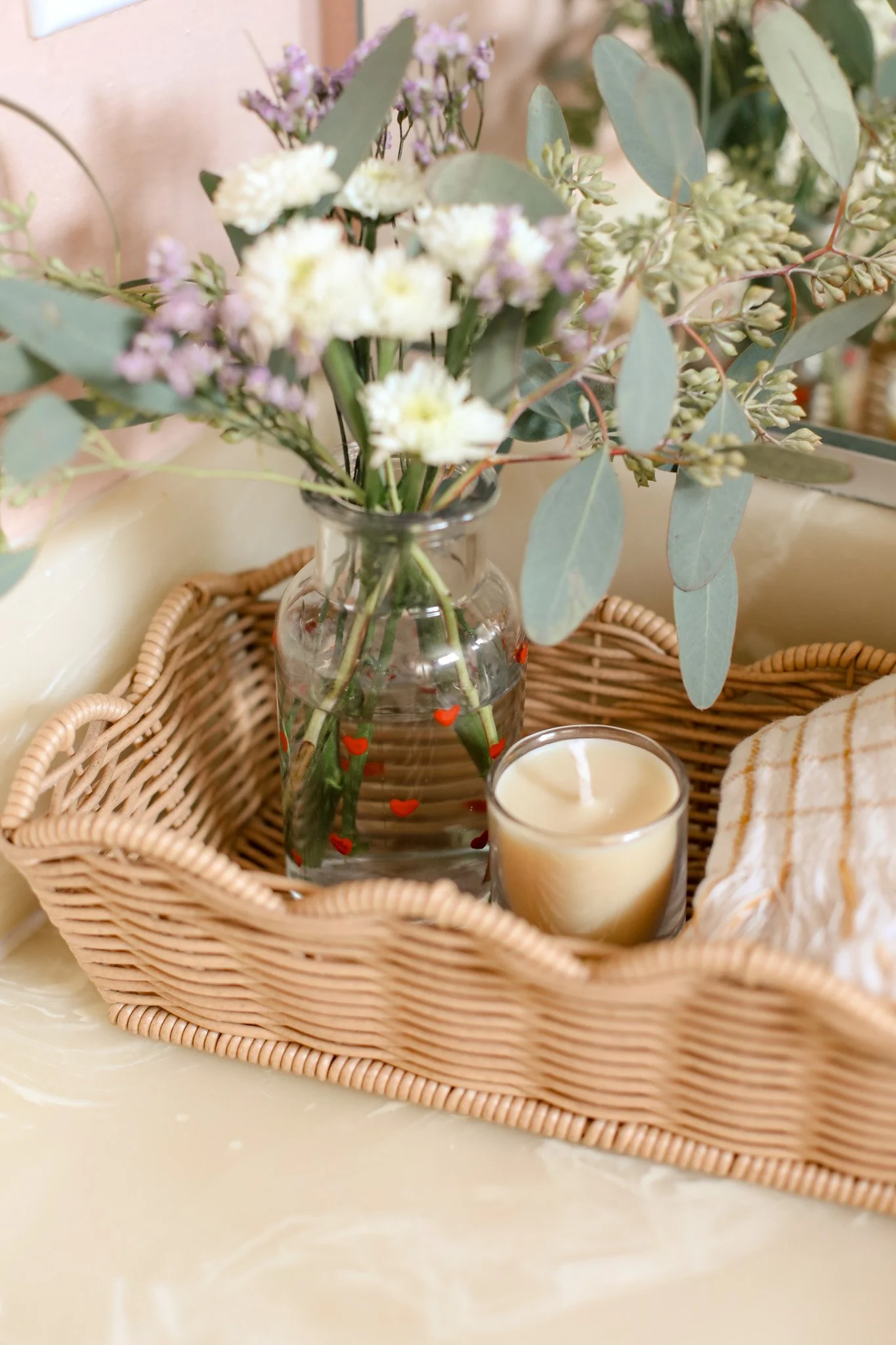 If you found some small little bud vases, I think this project would make a cute little Valentine’s gift to give to friends. Fill the vase with some inexpensive Trader Joe’s flowers and you have the sweetest handmade & trendy piece of home decor!